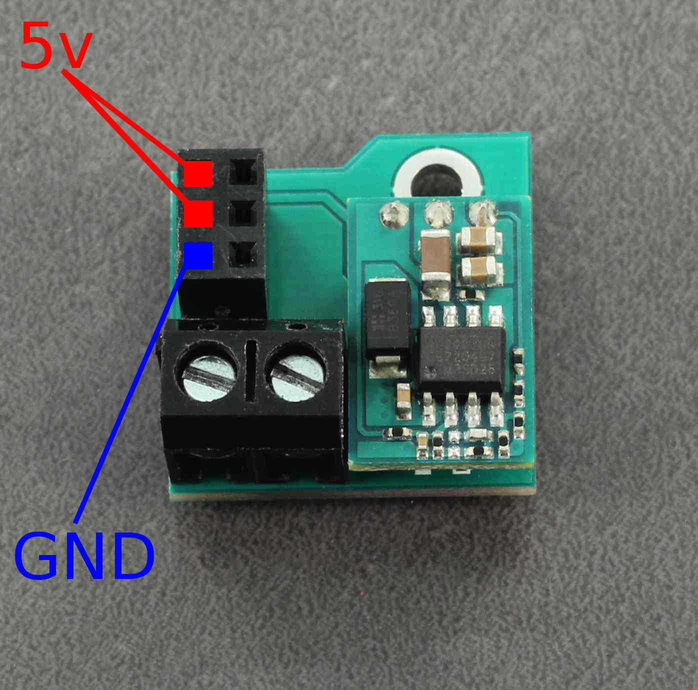 Both 5V and the GND are on the same cable, the one closest to the edge of both boards.